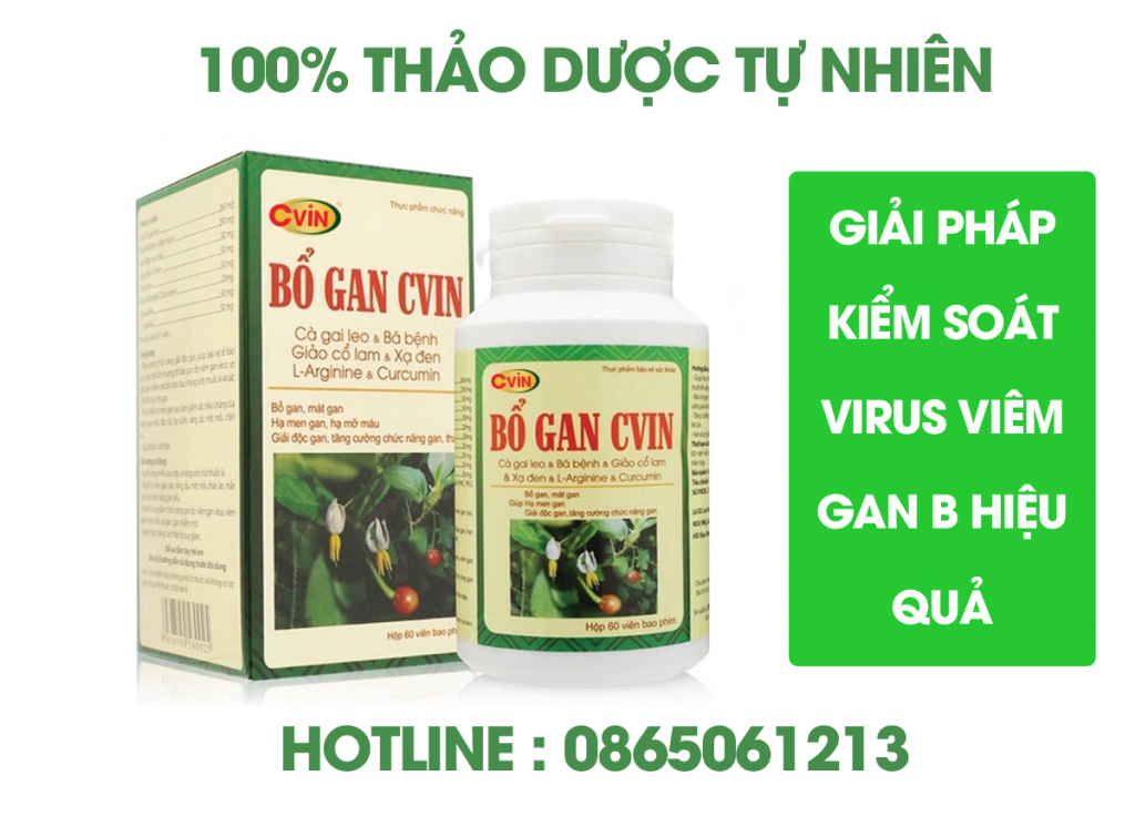 Bổ gan CVIN là sản phẩm của công ty cổ phần dược phẩm CVIN Việt Nam – TOP 100 công ty được đánh giá an toàn cho gia đình và trẻ em. Sản phẩm bổ gan CVIN được bào chế từ thảo dược tự nhiên các thành phần trong bổ gan CVIN đều là các thảo dược giúp bổ gan, tăng cường chức năng gan. Trong đó thành phần cà gai leo có công dụng hỗ trợ tối ưu trong việc kiểm soát sự sao chép của virus viêm gan B -> góp phần làm giảm nông độ viruts viêm gan B trong cơ thể.